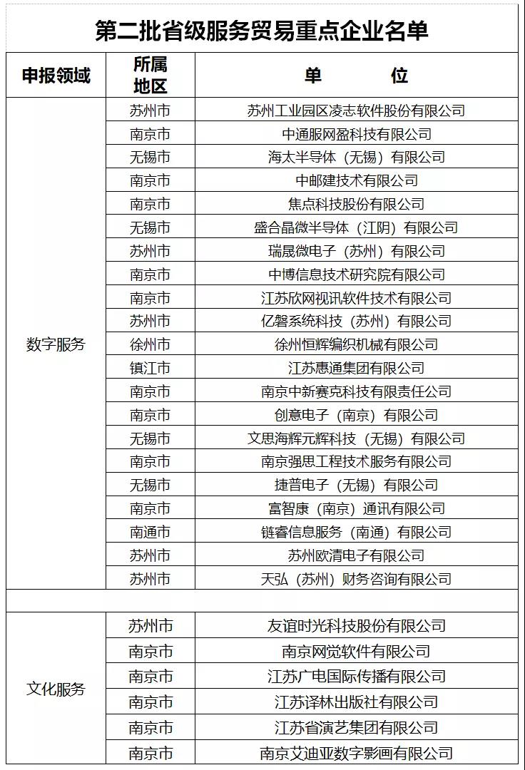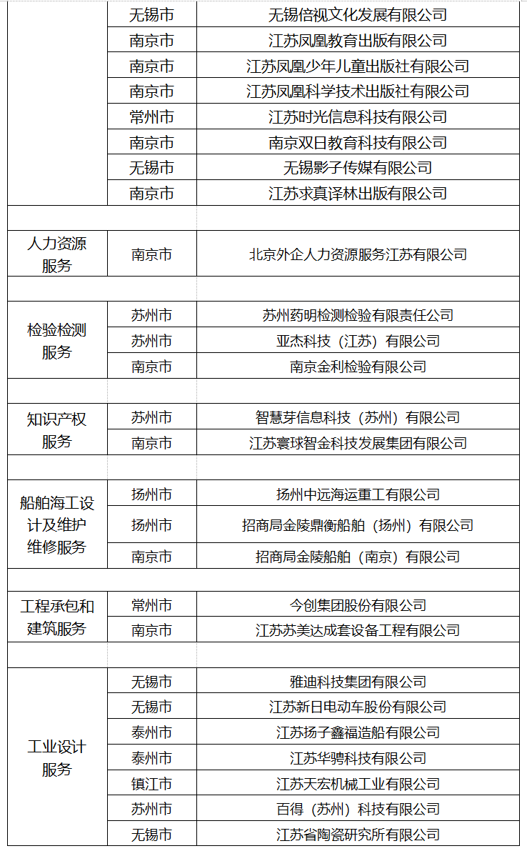 省商務(wù)廳發(fā)布2021年江蘇省服務(wù)貿(mào)易基地和重點企業(yè)名單